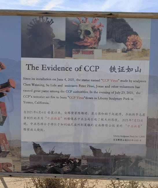 That statue was actually destroyed by a Chinese communist group operating inside the US and tasked with attacking people promoting democracy in China. They got mad enough at this statue in the middle of nowhere to attack it which was their downfall.