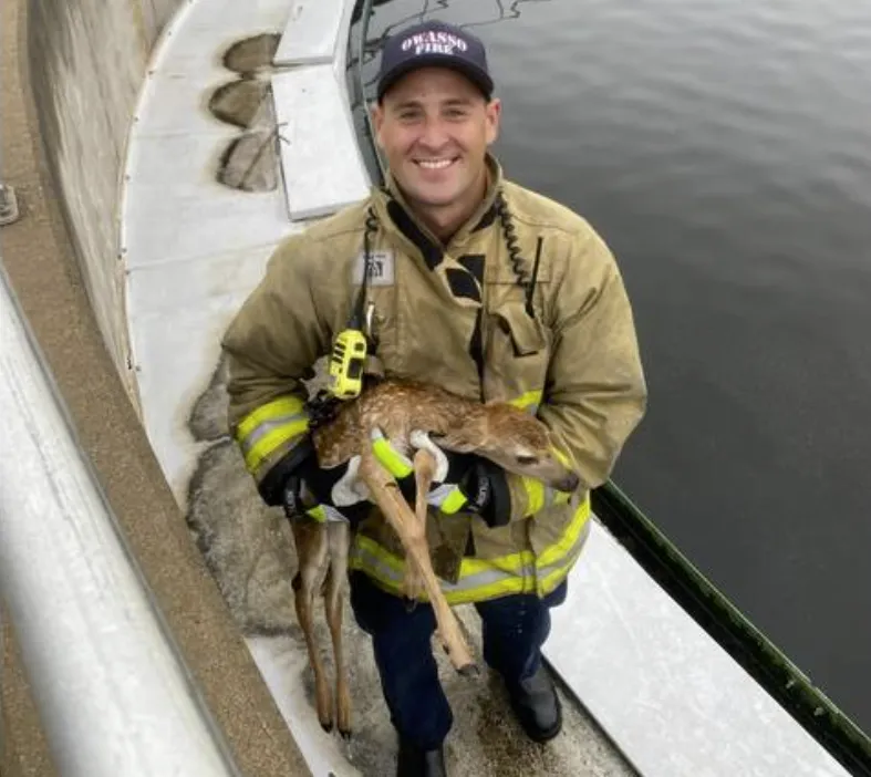 Wastewater deer rescue…Oklahoma firefighters fish a deer out of a treatment tank…
