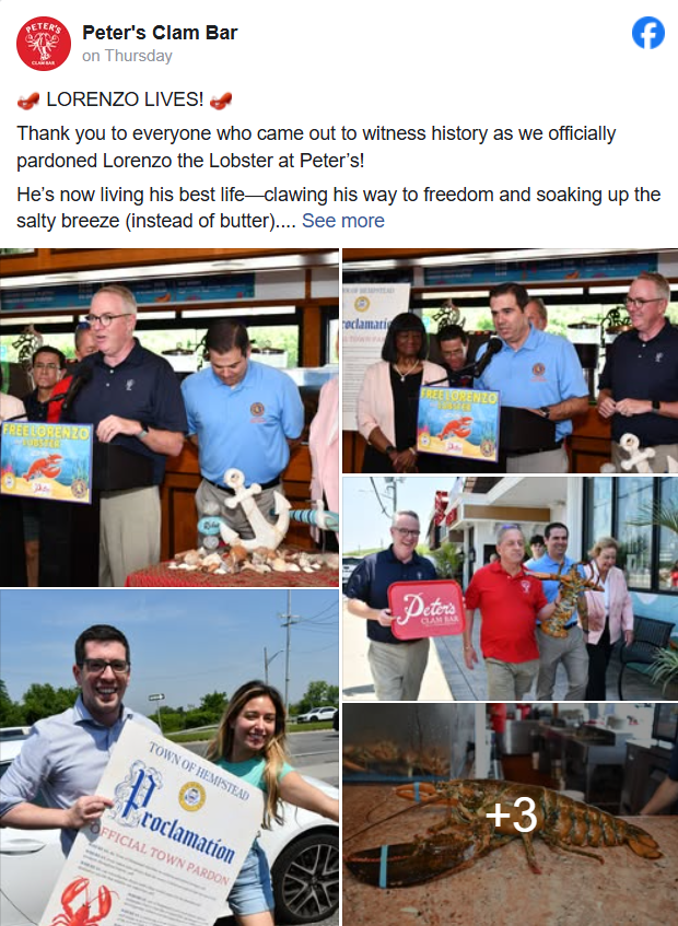 Not The Bee: “Peter’s Clam Bar in Hempstead, Long Island decided to celebrate National Lobster Day (and Father’s Day) by releasing their restaurant mascot, a 21-pound lobster named Lorenzo, back into the wild.