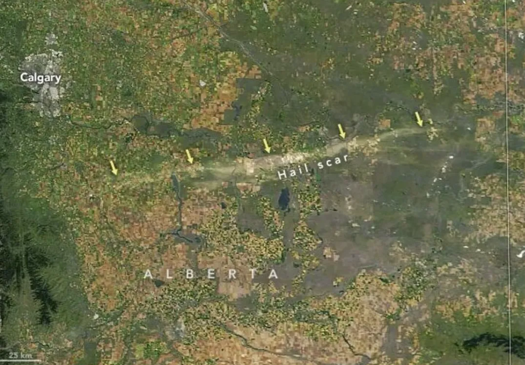 ❄️ 124-Mile-Long, 9-Mile-Long Hail Scar in Canada
