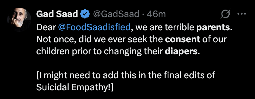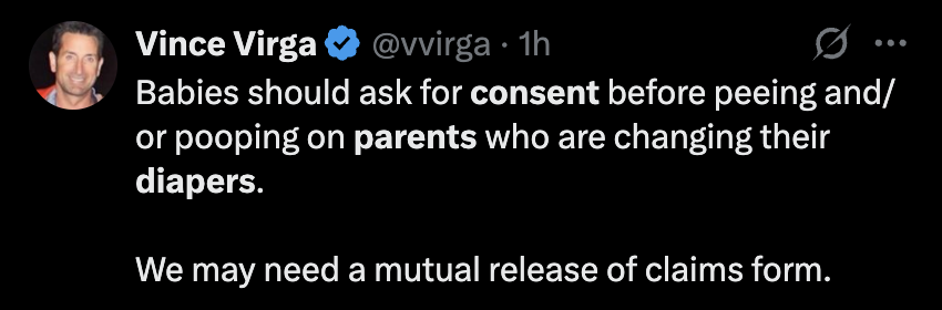 Any parent can tell you that if diaper changes don’t happen unless the baby gives “consent,” things would get real ugly, real quick.