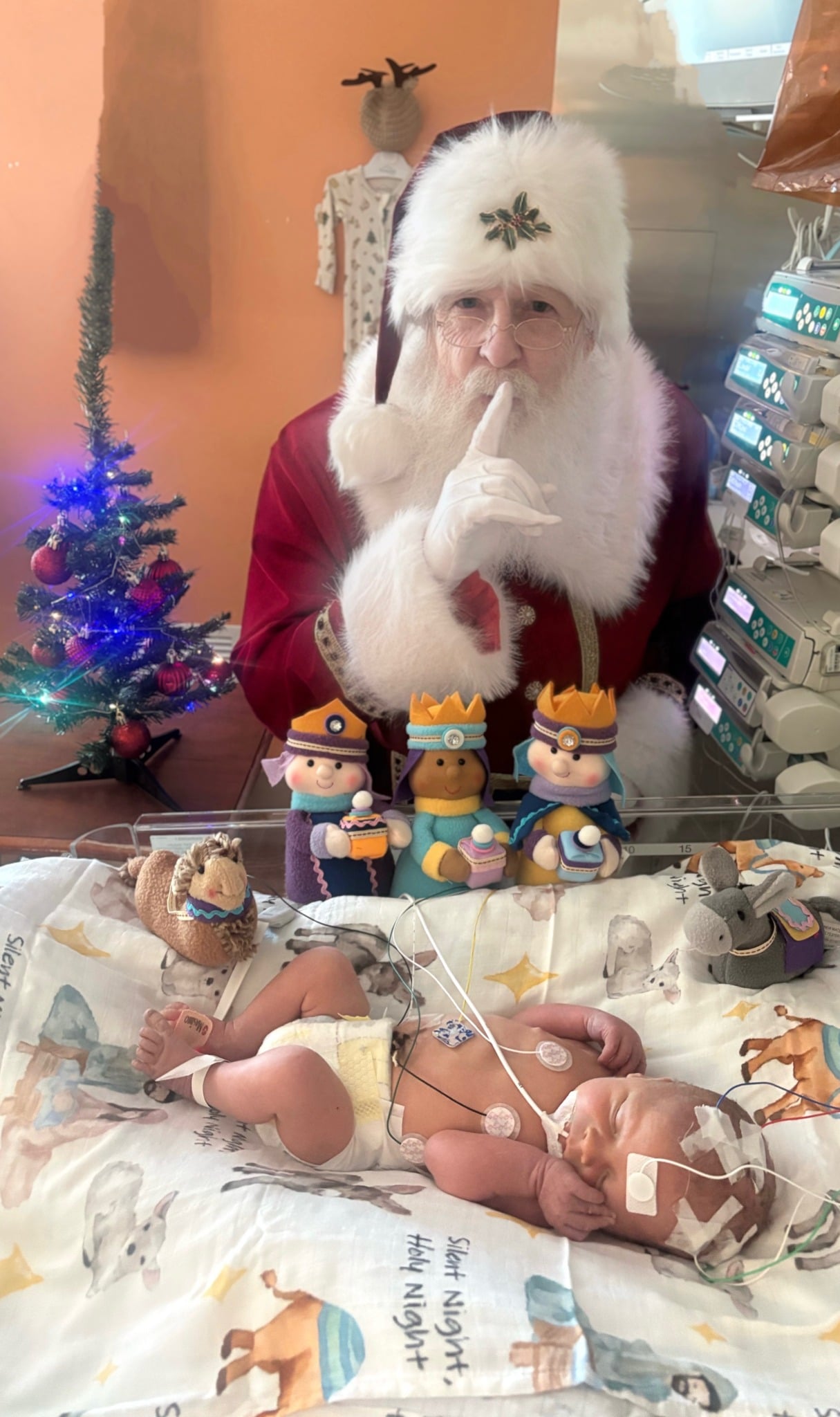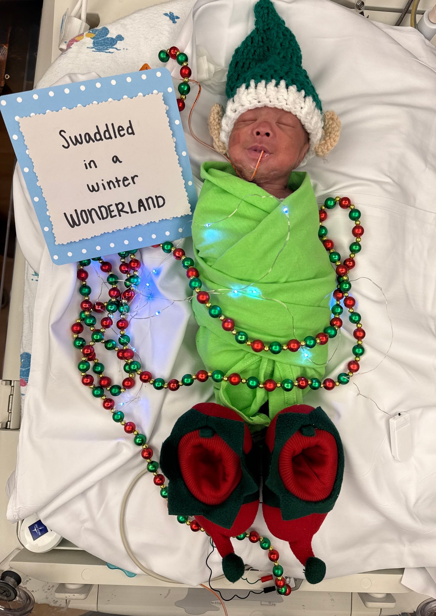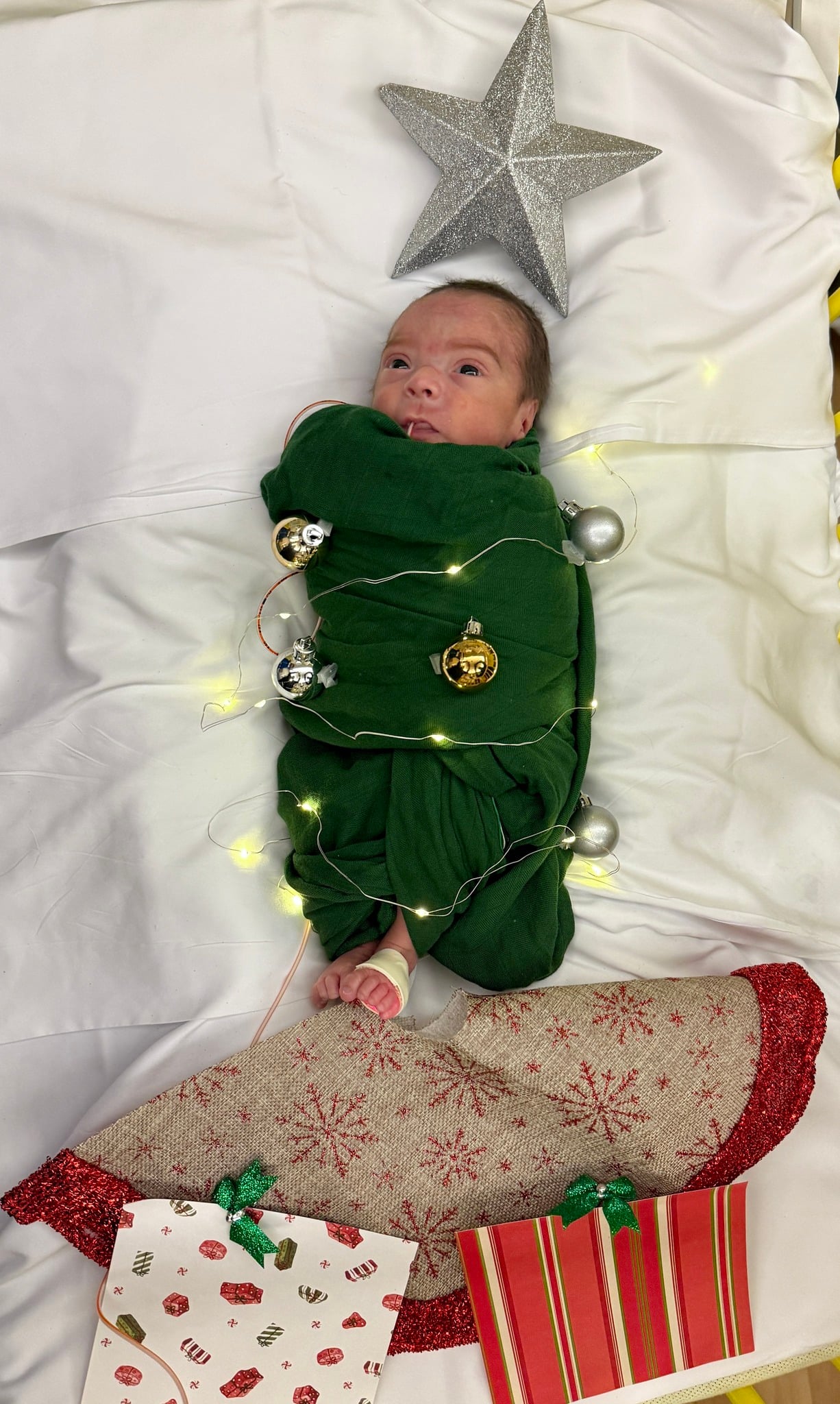 Your baby spending their first Christmas in the hospital can make for a bittersweet holiday, but the awesome NICU staff and volunteers at hospitals across the country do such an awesome job bringing the Christmas spirit to these sweet babies and their families!”