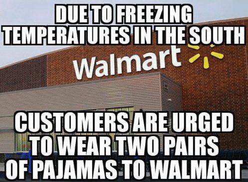 our walmart is in a college town…I’d be happy to see regular shoes in the snow instead of flip flops.