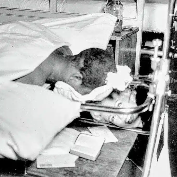 12. Marilyn Monroe visits a soldier with an injured back in Japan, 1954
