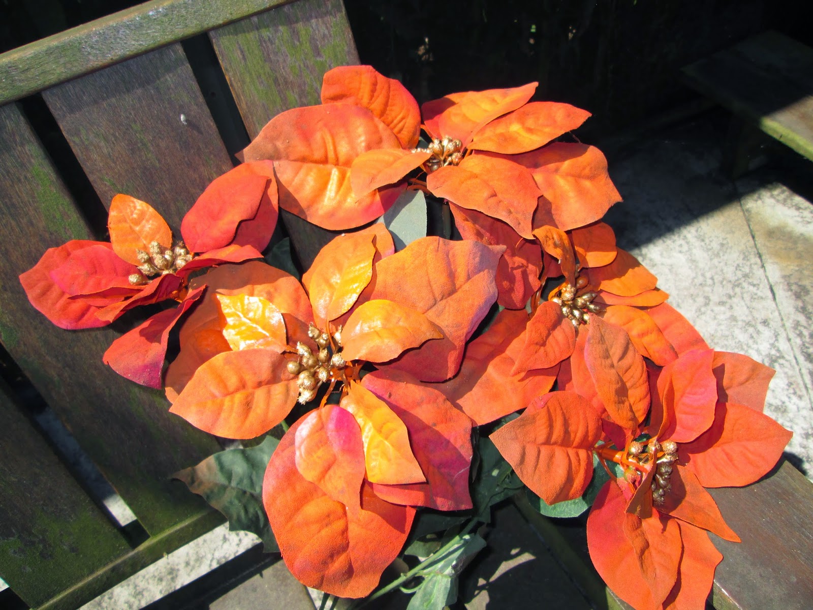 Brightly colored, though mostly red, Poinsettias provide effective color as home decor during and after the holiday season.
