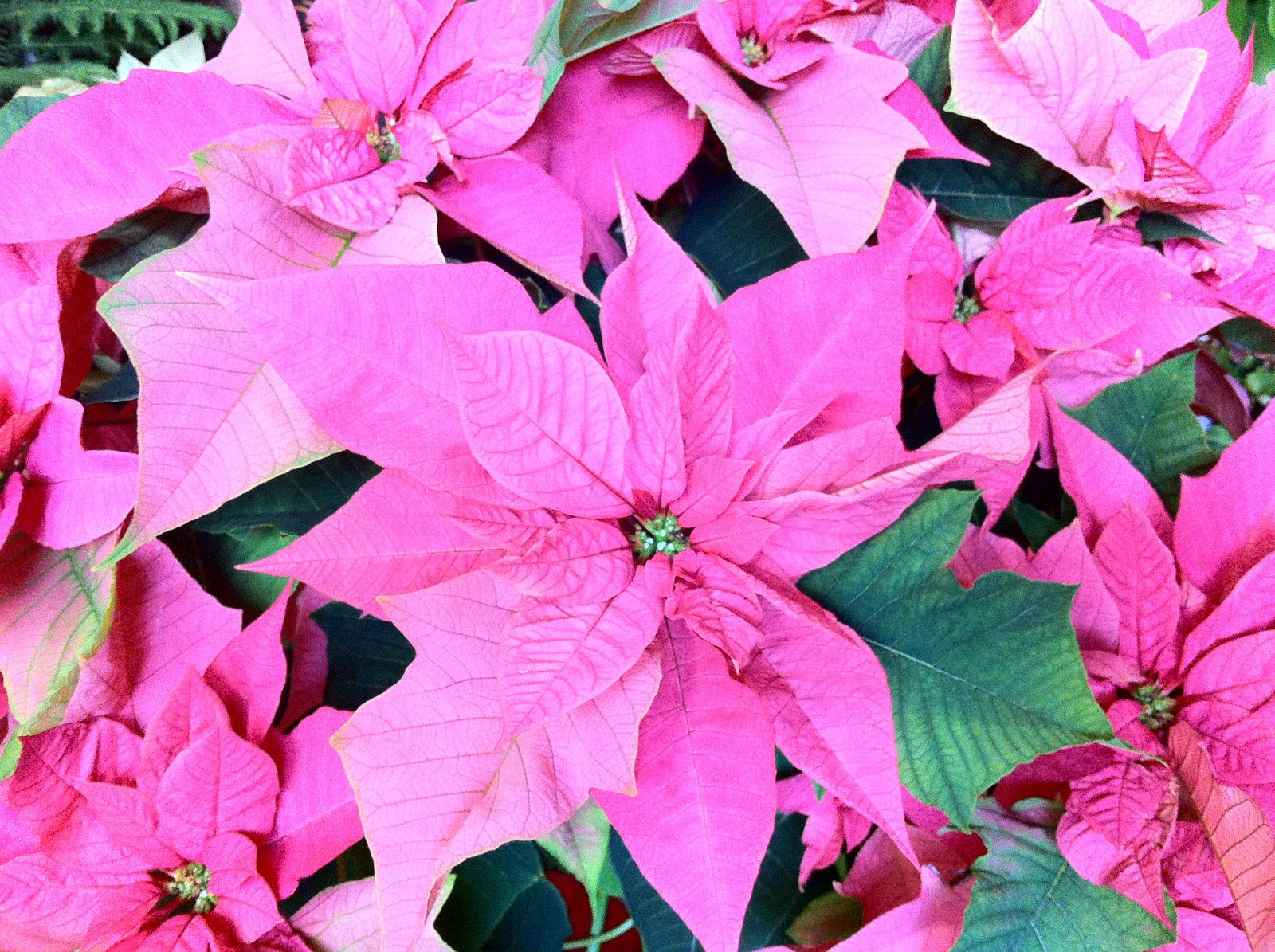 The colored bracts — which are most often flaming red but can be orange, pale green, cream, pink, white, or marbled — are often mistaken for flower petals because of their groupings and colors, but are actually leaves.